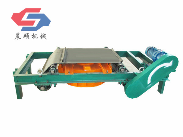 電磁除鐵器的基礎(chǔ)上增加了驅(qū)動電機(jī)、滾筒、帶刮板的缷鐵膠帶等組成的缷鐵機(jī)構(gòu)。在工作過程